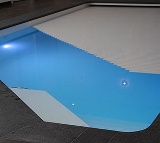 Door een op maat gemaakte lamellenafdekking te monteren wordt verdamping van het zwembadwater tot een minimum beperkt.