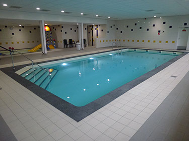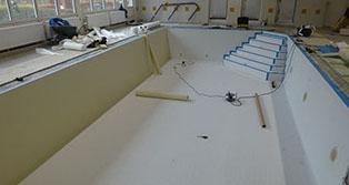 Het zwembad wat gerenoveerd moest worden was een polyester bak met de afmeting van 12 x5.5 meter. De Polyester bak was aangetast door osmose, waar Polyester na enkele jaren last van krijgt. We hebben besloten om er een zwembadliner in te plaatsen. Een 1.5 mm dikke gewapende zwembadfolie in te plaatsen. Ook werd er gekozen,een grote luxe inlooptrap met R.V.S leuning te creeren. De kleur van de zwembadfolie is een beige kleur, die als er water in het zwembad staat mooi licht blauw opkleurd. Om het geheel af te maken zijn de lampen vervangen door energiezuinige LED verlichting. En de oude lichte randsteen is vervangen door een mooie donkere natuurstenen rand.